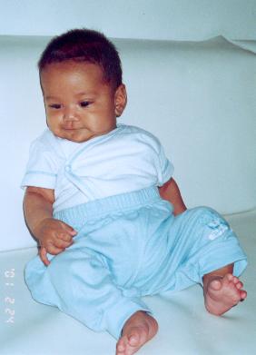 Viktor, 11 veckor vid vårt första möte, visade sig vara en harmonisk och gladlynt baby. Han log genast första dagen mot oss alla tre och speciellt mot storasyster Alexandra. Alexandra tyckte också mycket om att spexa och skoja med lillebror och han följde henne ivrigt med blicken.