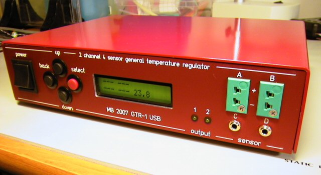 For reflow soldering surface mounted components, a very special and accurate temperature regulator is needed. So I made a general purpose microcontroller based regulator with special programs for reflow soldering. The regulator has two 230 VAC outputs for the heating elements and one 12 VDC output for cooling fan or similar. It supports two high-temperature K-type sensors and two lower temperature sensors of type DS18x20 or SMT160-30, and has a USB port for logging data to a PC. The software in the regulator is multitasking so that several programs can be running simultaneously, as long as they don't allocate the same output. Traditional P/PI/PD/PID regulation along with special reflow regulation is supported.