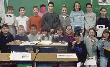 flundra och fläsk. Alla eleverna var glada och sjöng skolans titelmelodi